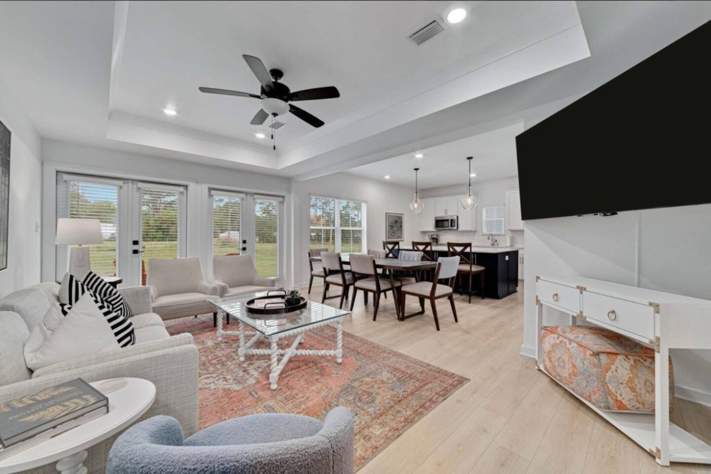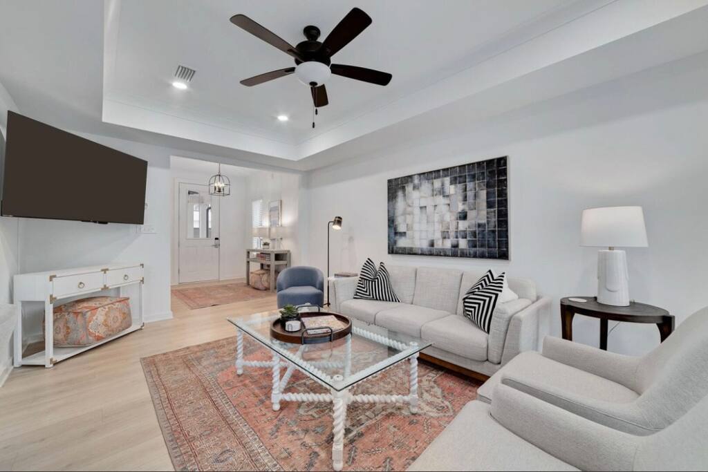 “The Orangery” Features and Fun ☀ Private community pool ☀ 3-minute walk to Wolf bay beach for swimming, fishing and views ☀ Beach themed decor ☀ New modern beach house ☀ In the heart of Orange Beach close many entertainment & dining options ☀ Ideal for one or two families ☀ Smart TVs w/ Amazon Prime, Disney+, Hulu, Netflix, etc ☀ Open floor plan kitchen + living room ☀ Tastefully decorated w/ high quality furnishings ☀ Well equipped kitchen w/ everything you need to cook your favorite meals